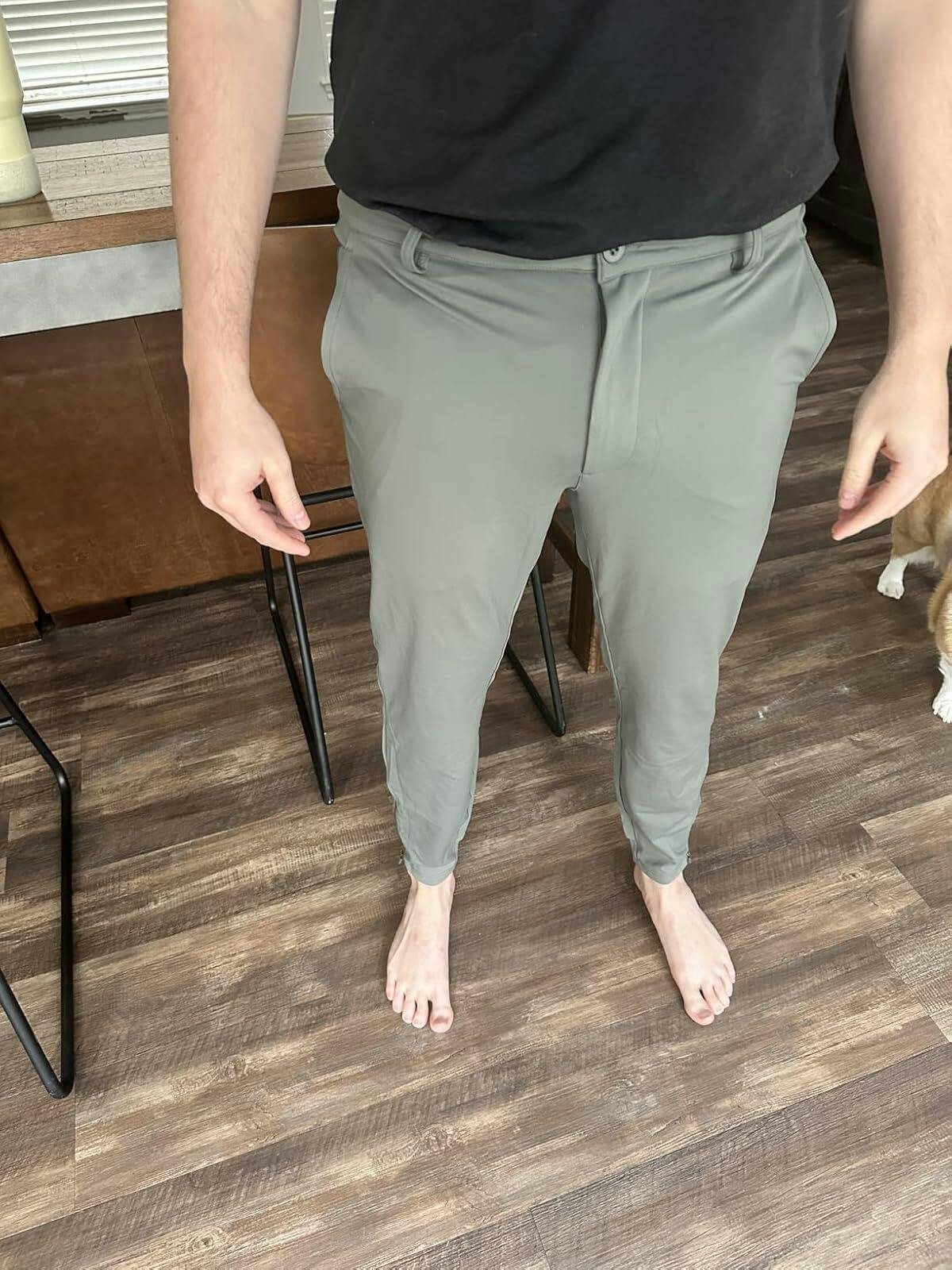 Lightweight Ankle-Zip Sweatpants with 4 Pockets blend performance and style. Made from breathable, 4-way stretch, moisture-wicking fabric—quick-drying, skin-friendly, and ultra-comfortable. Slim-fit design with button closure, zip fly, and cuffed ankles with discreet zippers for easy on/off. Versatile for golf, gym, travel, or office wear. Flatters most body types—dress up or down with ease!
