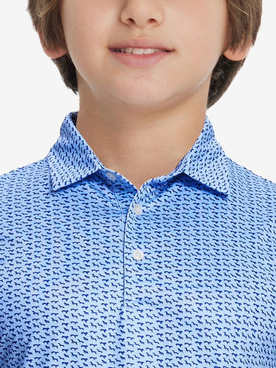 Get your little golfer ready for adventures with our 'Stylish Print Boys Polo Shirts'. Crafted from top-notch fabric that wicks moisture, stays light, and shields with UPF 50+. Let him swing freely with the split hem and stretchy fabric. Watch him rock the course in fun animal and plant prints that never fade, making him the cutest golfer around!