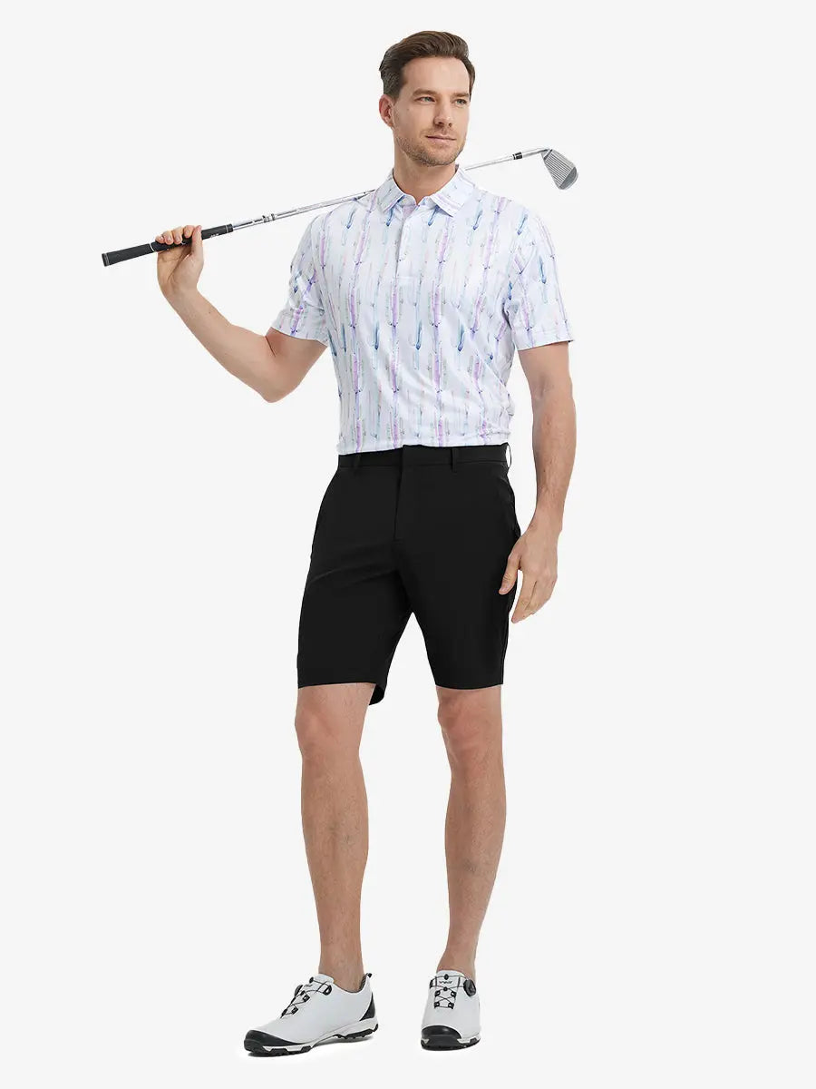 Our men's golf shorts are made from high-quality 4-way stretch fabric, ensuring comfort and flexibility. Lightweight, breathable, and quick-drying, they offer a cool and comfortable wearing experience. Featuring a hidden snap button and quality nylon zipper, these shorts are durable and stylish. The high-stretch waistband provides great flexibility.