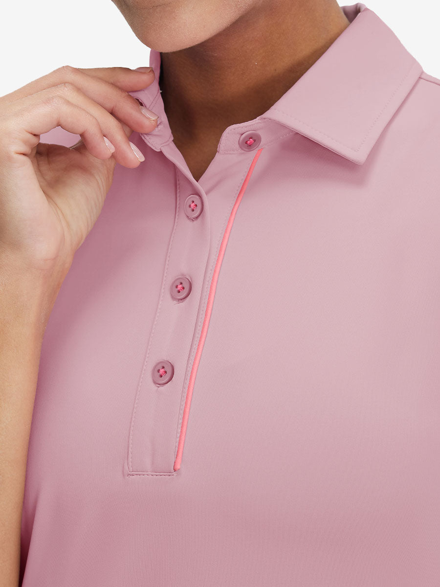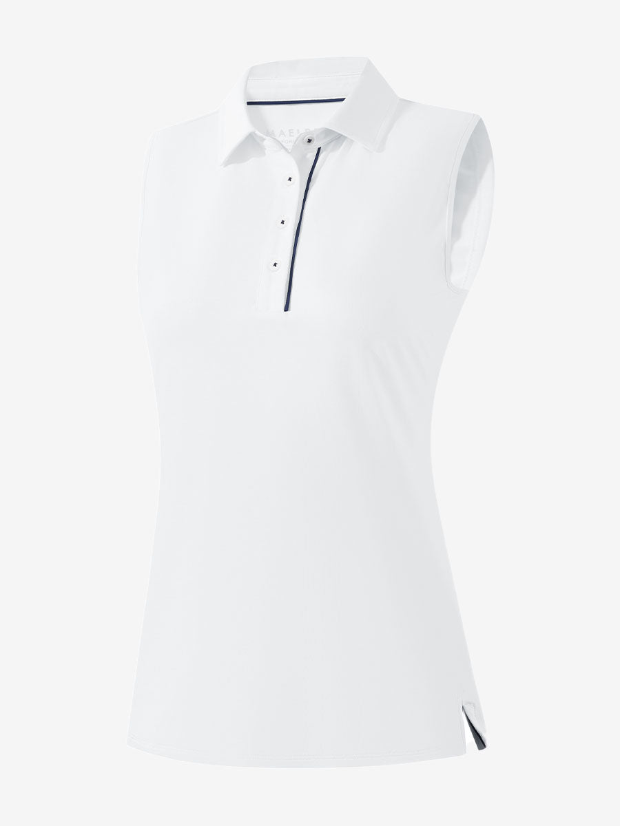 Introducing our Women's 4 Buttons Golf Polo Shirts—sleeveless, sun-protective, and stylishly designed for the modern golfer. Crafted from lightweight, breathable, quick-dry fabric with 4-way stretch, it ensures total freedom of movement. The 4-button collar lets you adjust neckline depth for comfort, while contrast piping adds a chic touch. Side vents and a cinched waist enhance breathability and create a flattering silhouette—perfect on or off the course.